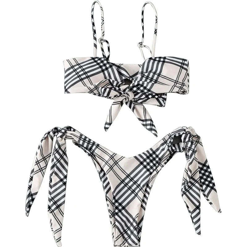 Lace-up Bikini Women's Swimwear Plaid Printing Sexy Swimsuit