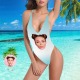 One Piece Swimsuit My Face Swimsuit Custom Bathing Suit V-Neck with Face - Blue Blooming