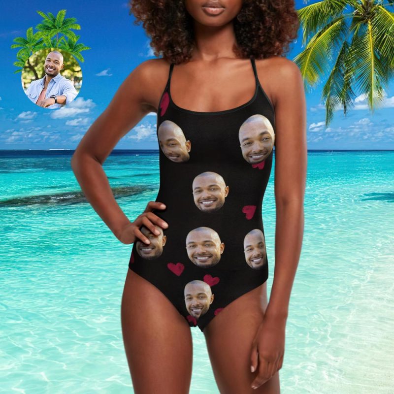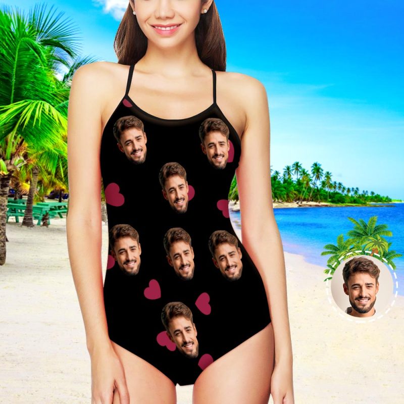 One Piece Swimsuit My Face Swimsuit Custom Bathing Suit with Face - Heart