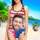 Face Swimsuit One Piece Swimsuit Custom Bathing Suit with Husbands Face - American Flag
