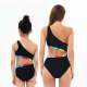 One Piece Bikini Slanted Shoulder Rainbow Edge Parent-Child Swimsuit