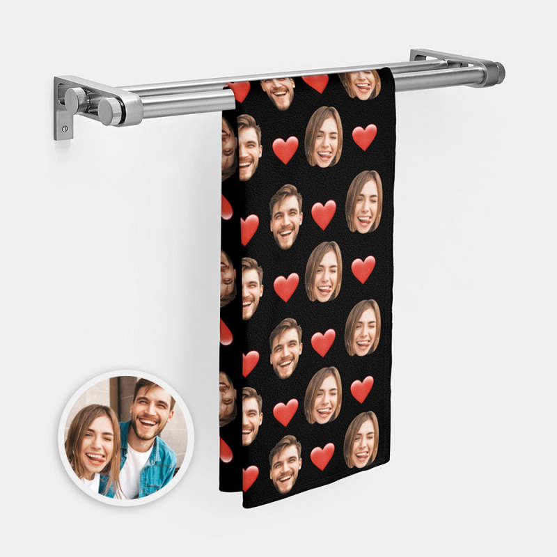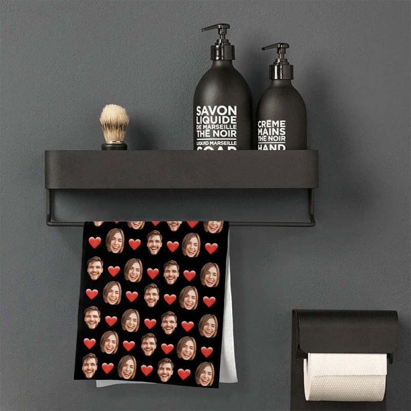 Personalized Face Towel Custom Red Heart Multiple Faces Towel Gift for Lover