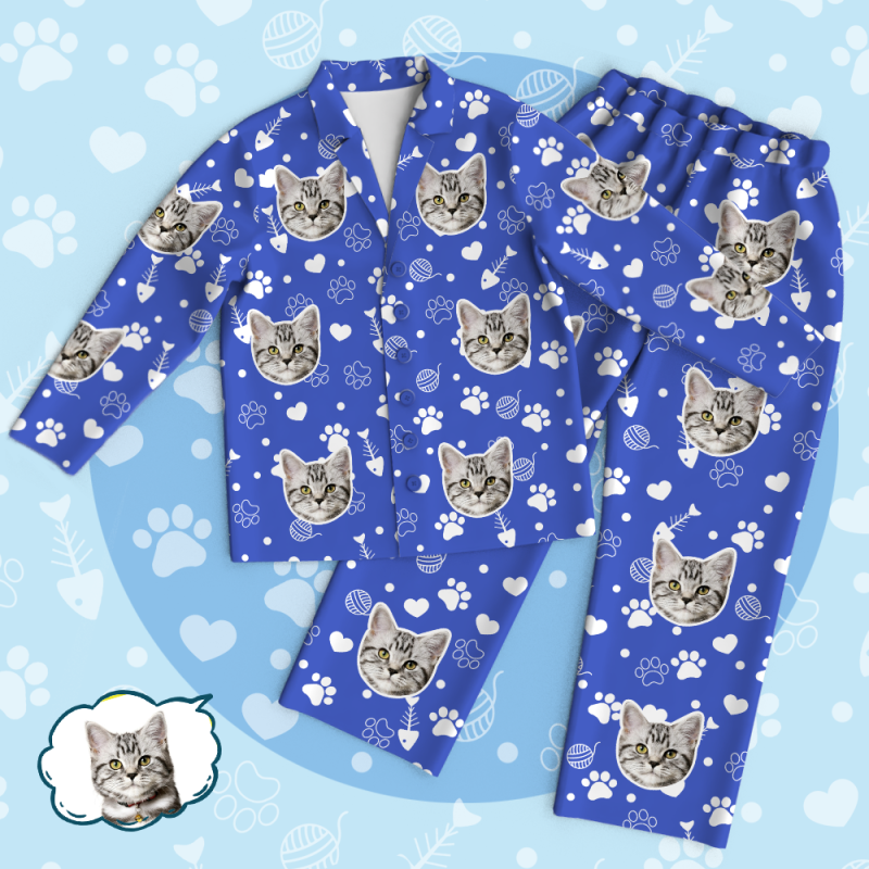Custom Face Pajamas Custom Cat Photo Pajamas Blue