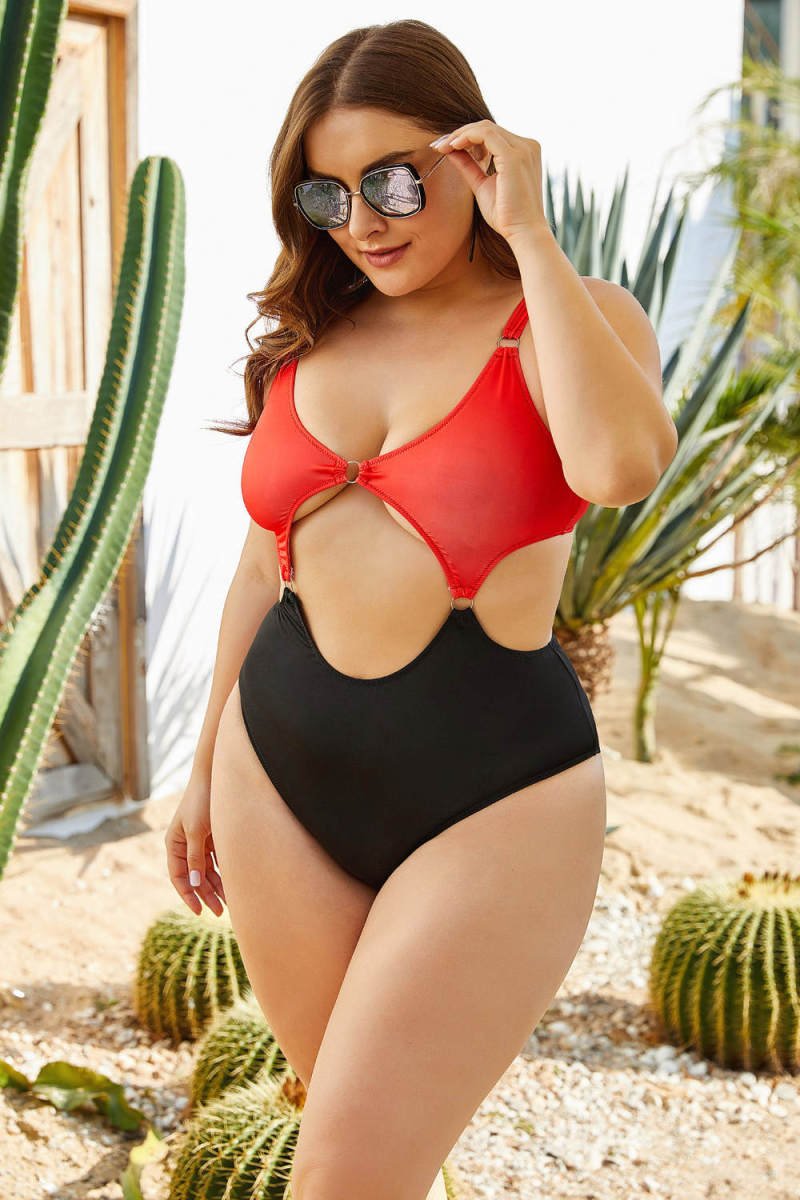 Plus Size One Piece Swimsuit Suspender Cutout Super Sexy Bikini
