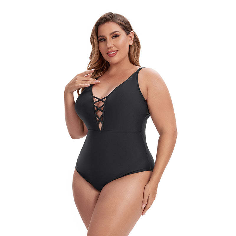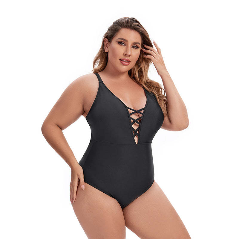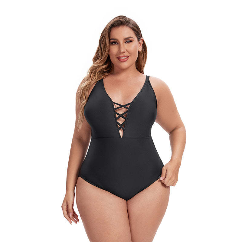 Plus Size Solid Color Backless Swimsuit Ladies Sexy Swimsuit