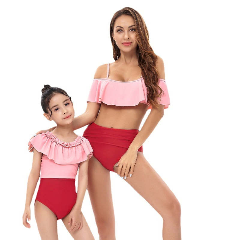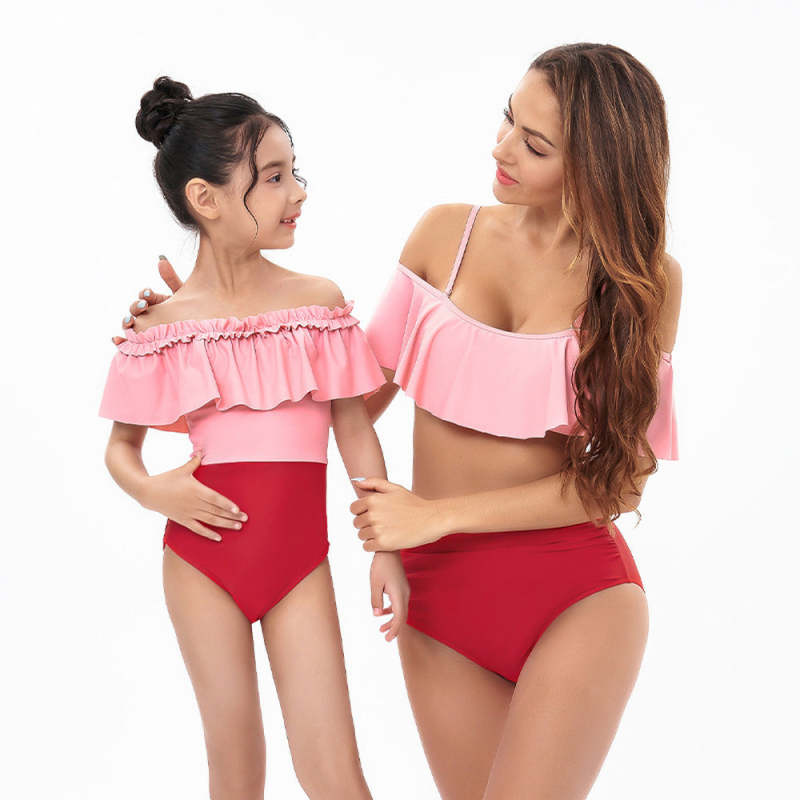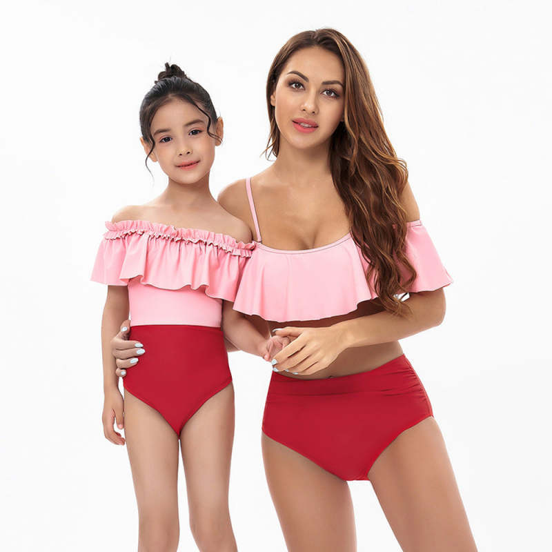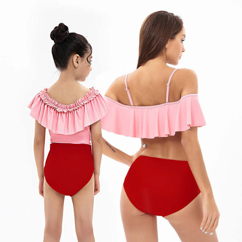 Ruffle High Waist Sling Bikini Parent-Child Swimsuit