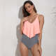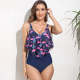 Ruffle Print One-Piece Swimsuit Suspender Sexy Bikini