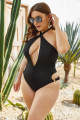 Sexy Black Deep V One Piece Plus Size Swimsuit