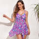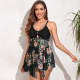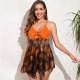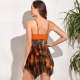 Sexy Smocked Tethered Mesh Skirt Split Bikini
