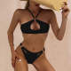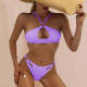 Sexy Solid Color Low Waist Split Bikini Back Button Sswimsuit