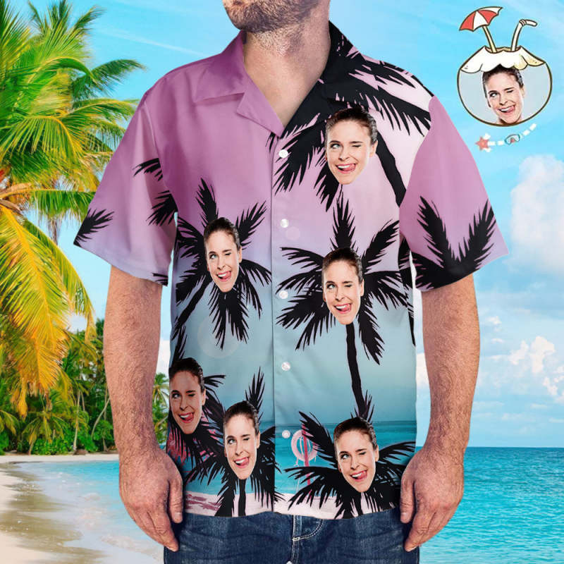 Shirt with Face Custom Face Funky Hawaiian Shirt Coconut Trees Button Down Shirts