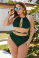 Solid Color Sexy Bikini High Waist Slim Fit Backless Strap Large Swimsuit
