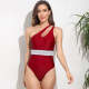 Solid Color Webbing One Shoulder One-piece Swimsuit Sexy Solid Color Swimsuit