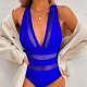 Women's Swimsuit Seaside One Piece Blue Fishnet Bikini